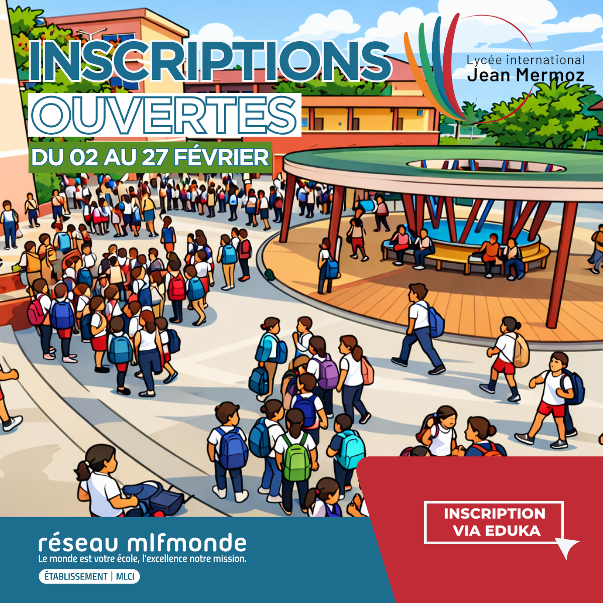 Chers parents, Nous avons le plaisir de vous informer que les inscriptions et réinscriptions pour l’année scolaire 2026/2027 ouvriront à partir du 02 février 2026.