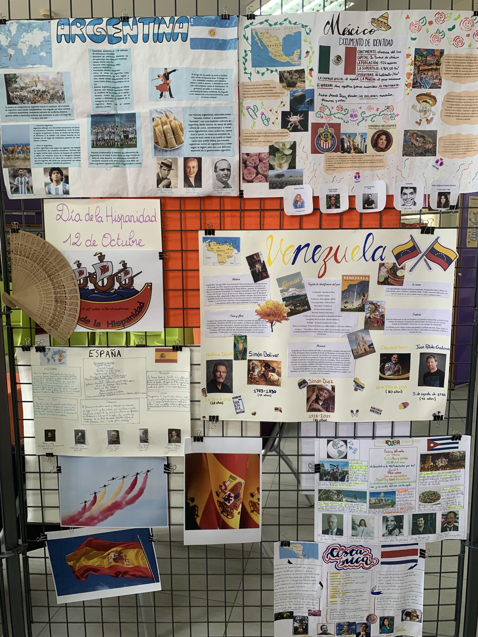 À l’occasion de la fête nationale espagnole, appelée « Día de la Hispanidad » (jour de l’hispanité), les élèves de la classe de 3èA, accompagnés de leur professeur d’espagnol, Mme Isabelle Najm, ont décoré, ce jeudi 12 octobre, une petite partie du CDI du lycée avec des affiches des pays hispanophones, préparées en binômes dans le cadre d’un projet de classe autour de la langue espagnole.