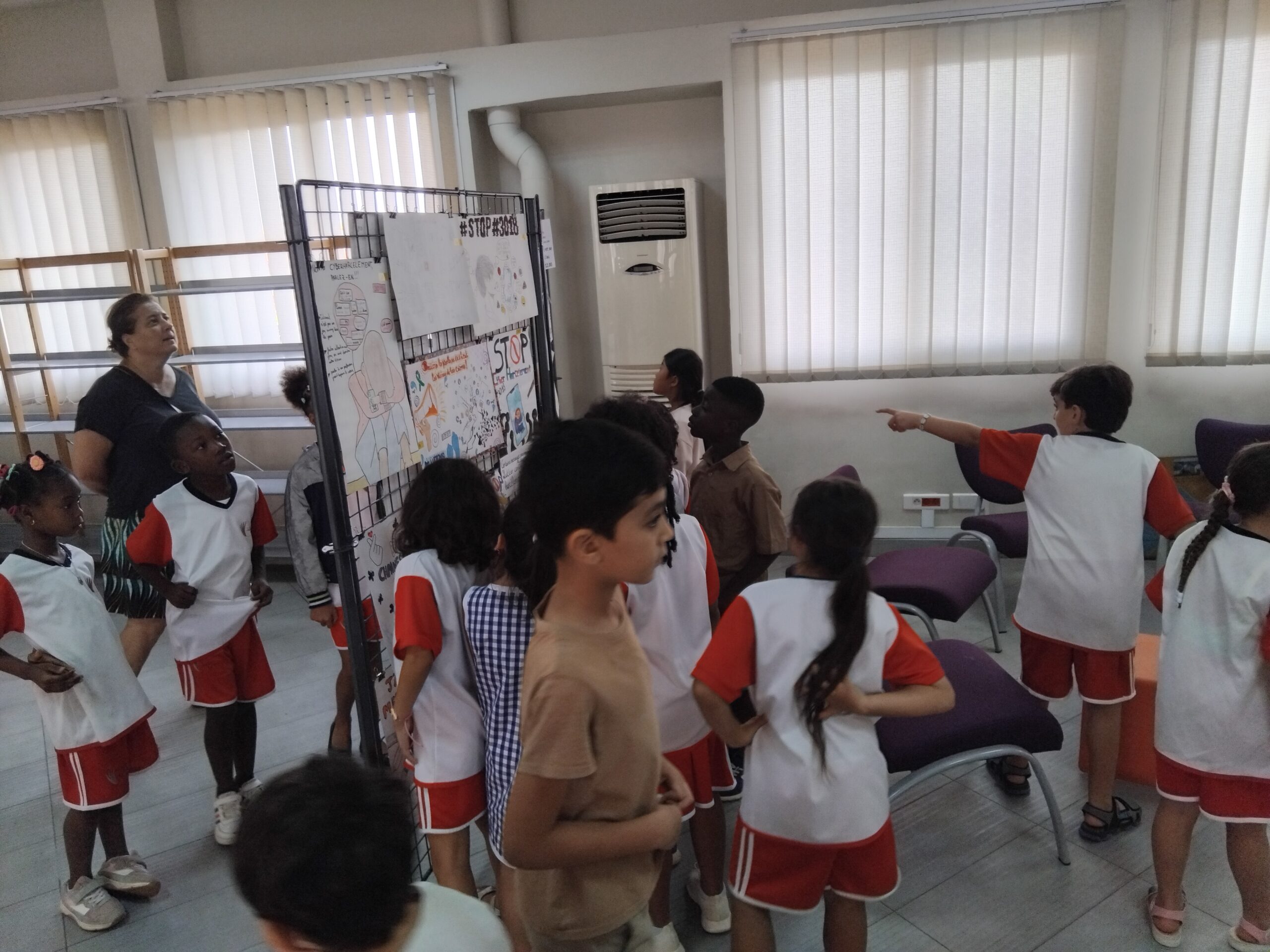 La campagne s’étend également au collège, où les élèves produisent des infographies pour illustrer leur engagement contre le harcèlement. Ce mercredi, les élèves de CE1A, accompagnés de leur enseignante, ont eu la chance de visiter les travaux réalisés par leurs aînés du collège. Enthousiastes, ils ont pris part au processus en votant pour leurs infographies préférées, apportant ainsi leur pierre à l’édifice de cette sensibilisation collective.