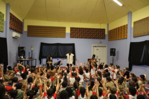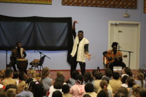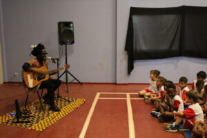 Koami a enchanté les élèves de l’élémentaire et de la maternelle avec des contes où le lion, la chèvre, le lièvre et le abeilles rivalisent de malice et d’ingéniosité.