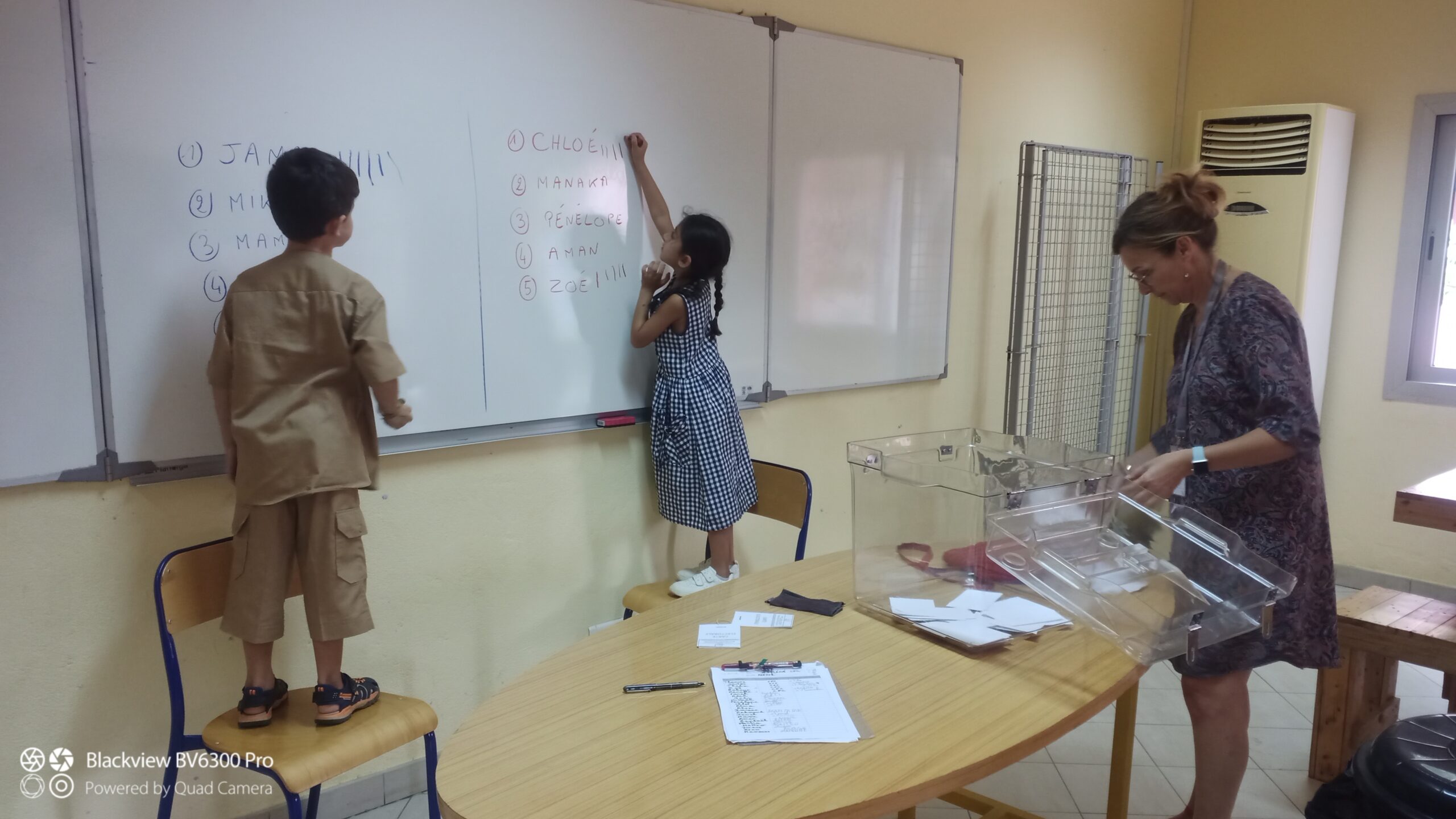 Mardi 03 octobre se sont déroulées les élections de nos 02 délégués de la classe. Nous avons presque fait comme les grands ! Le bureau de vote se trouvait dans le foyer du secondaire, équipé de 02 isoloirs et d’une urne ! Il y avait 05 candidates filles et 05 candidats garçons.