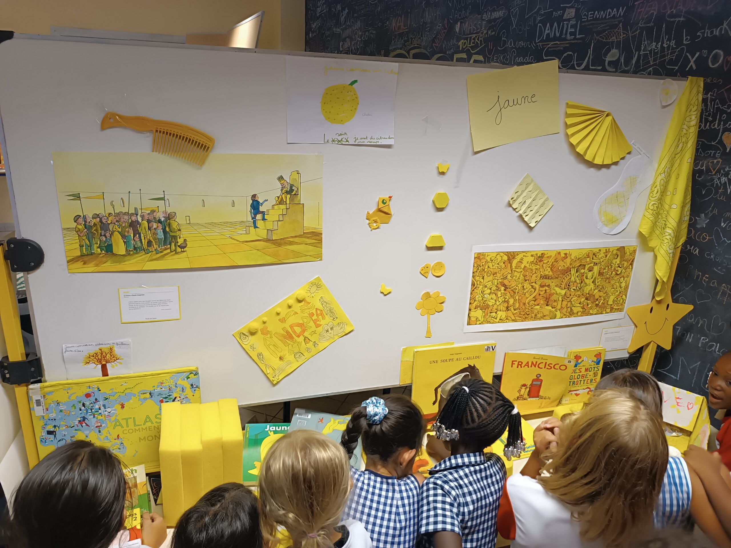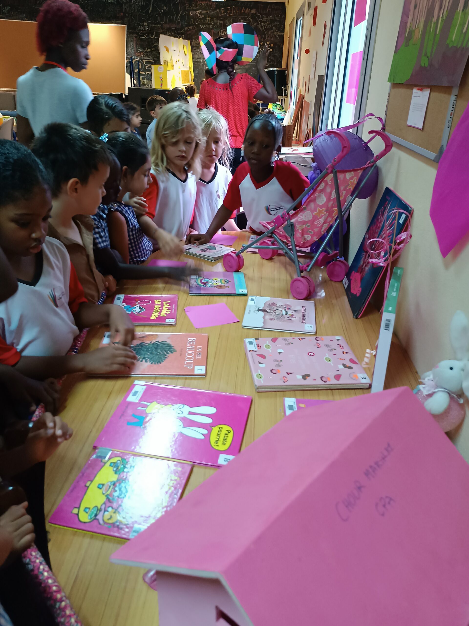 La semaine dernière, la visite de l’exposition s’est poursuivie. Les classes de maternelle ainsi que celle de CP et de CE1 ont passé un temps à visiter l’exposition, à explorer les images et les objets, à lire et écouter des histoires.