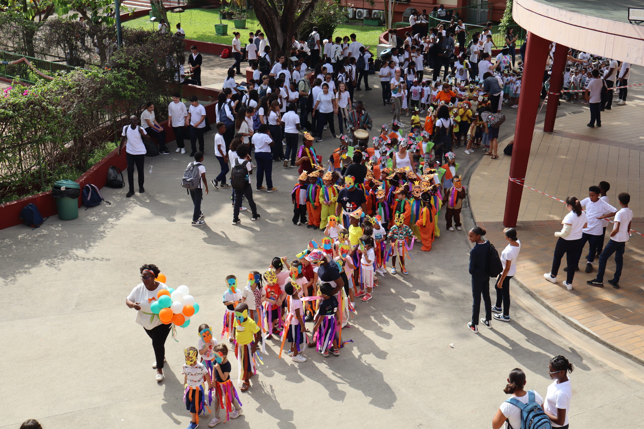 Cette activité festive a vu la participation de l’ensemble des classes de maternelles accompagnées des enseignantes et de l’équipe de direction. Cet événement a vu la collaboration de certains élèves du secondaire, venus soutenir les plus petits lors du défilé.