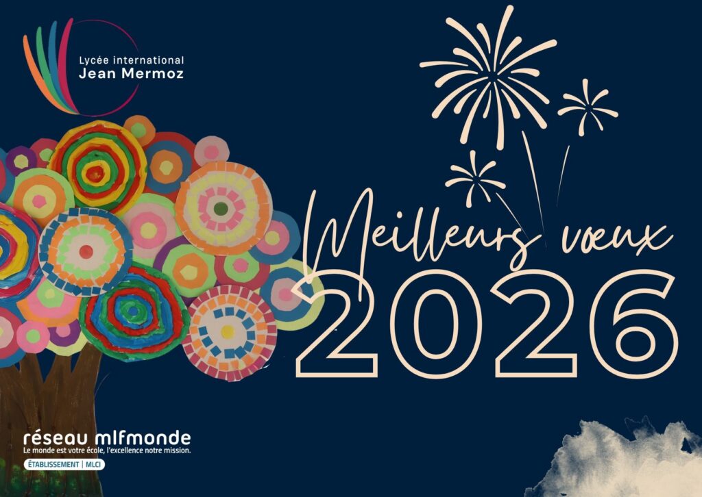 Le Proviseur et l’ensemble des personnels du Lycée international Jean-Mermoz vous présentent leurs meilleurs vœux pour 2026. Que cette année soit pour chacune et chacun d’entre vous source de paix, de bonheur et de réussite !