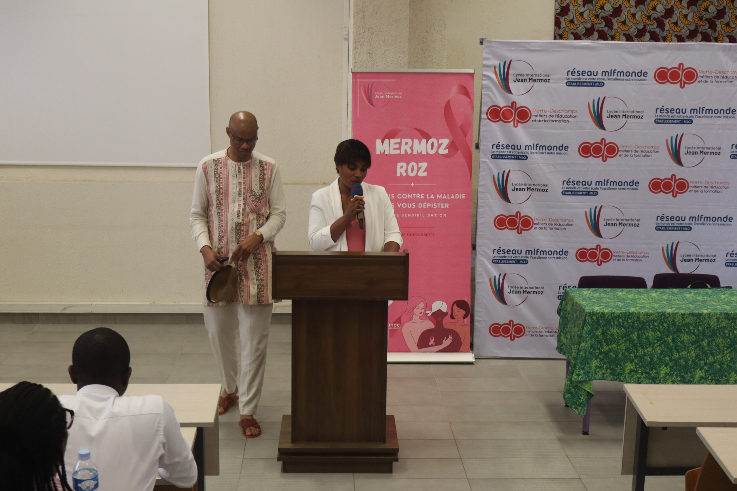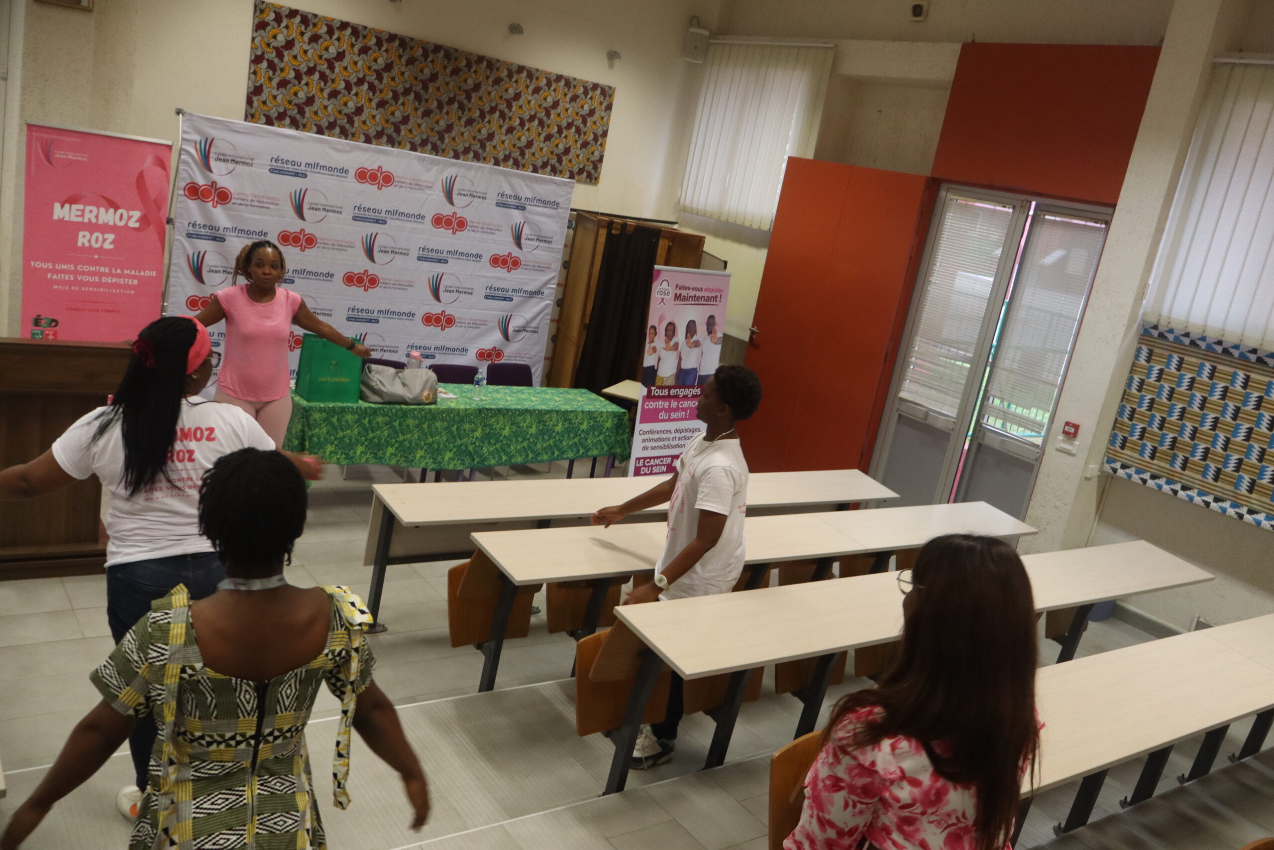 Le jeudi 2 octobre, la journée a été placée sous le signe de la prévention et de l’écoute. Un médecin de la PISAM a expliqué en détail les cancers du sein et du col de l’utérus, leurs symptômes et les moyens de prévention. Dans un geste fort, la PISAM a également offert des bons de dépistage au personnel du lycée. L’après-midi, Mme Jeanne Fadiga Montessuy a livré un témoignage sincère et émouvant sur l’accompagnement d’un proche face à la maladie, ouvrant un espace d’échange et de partage avec l’auditoire.