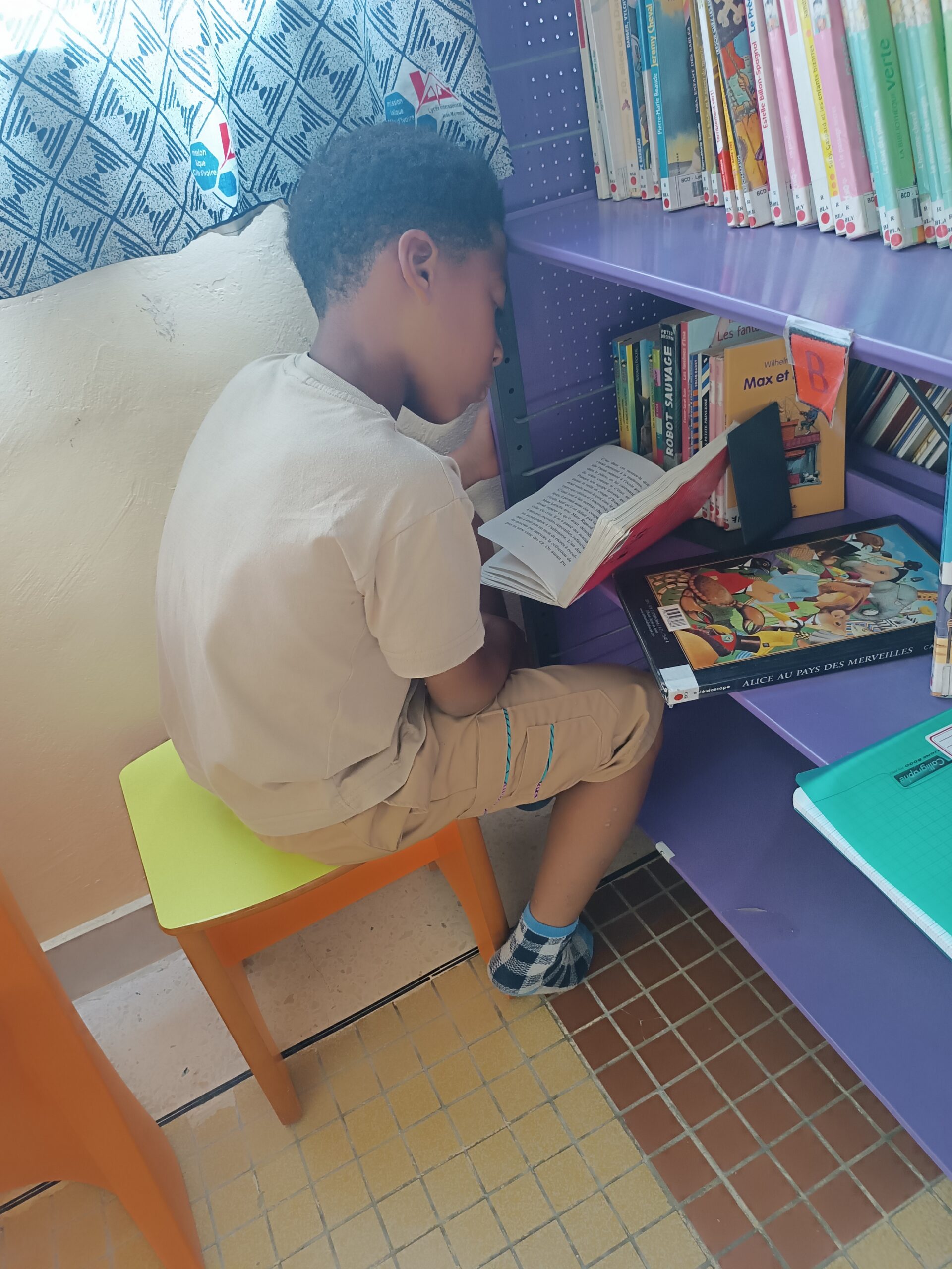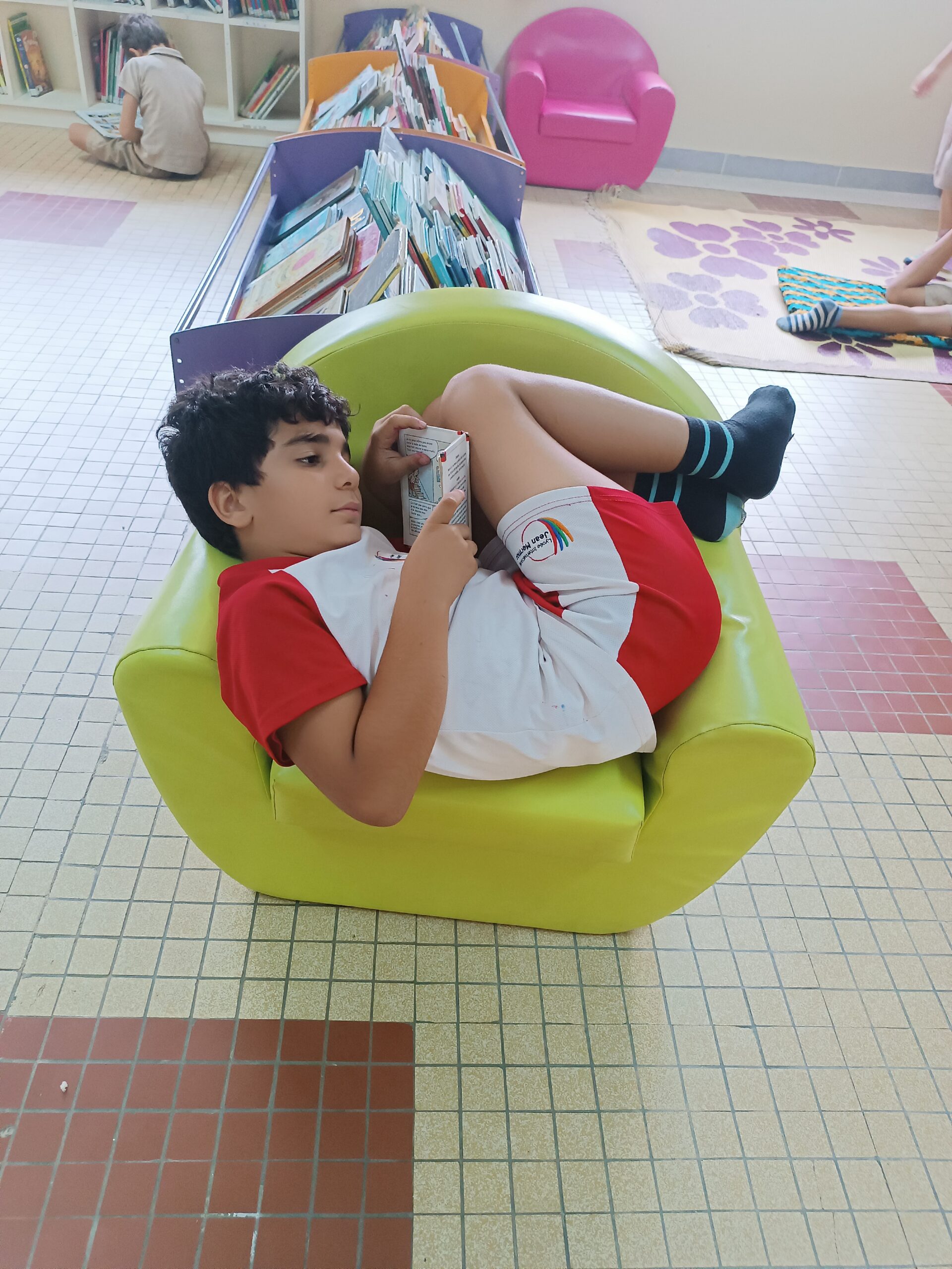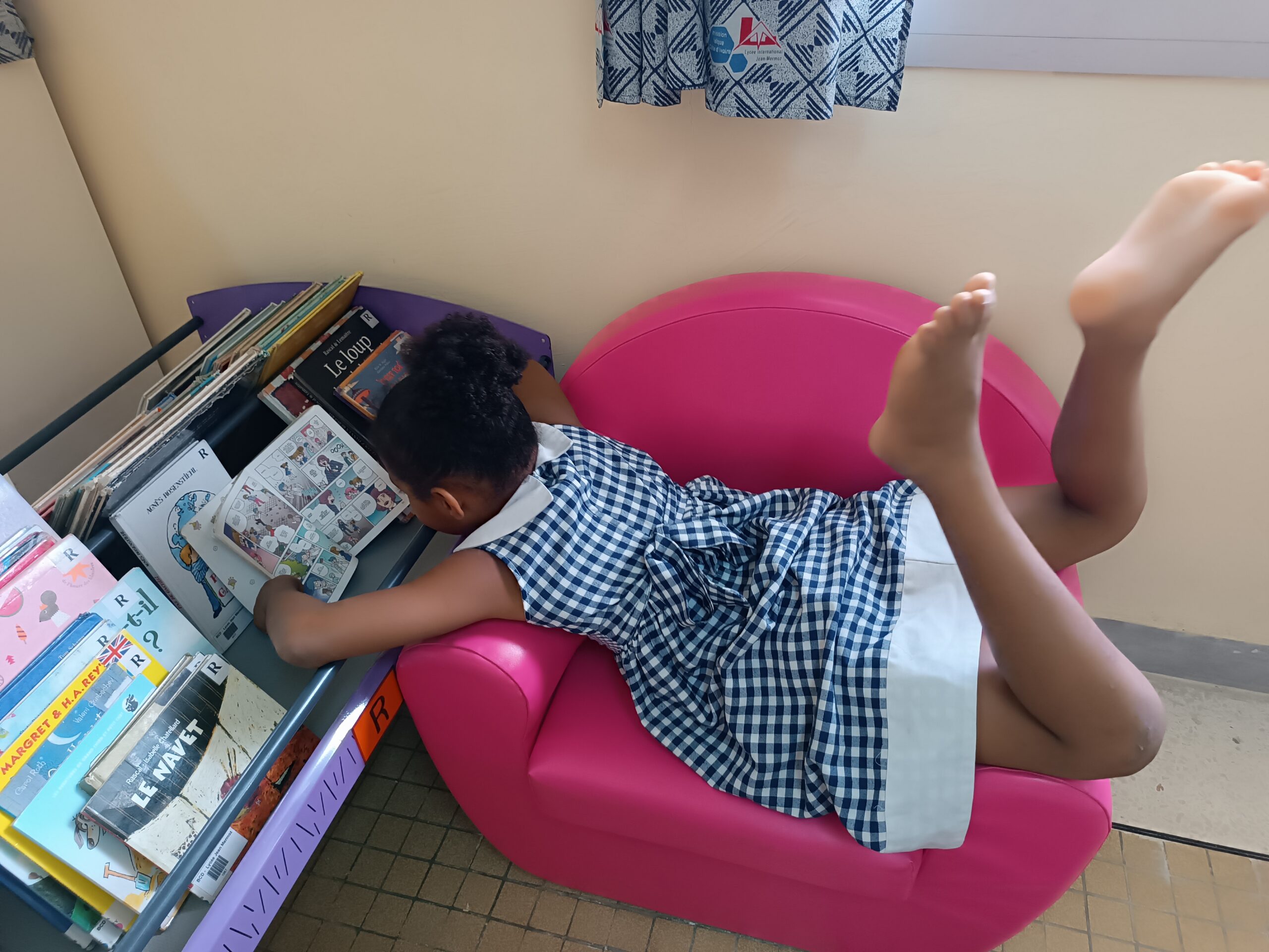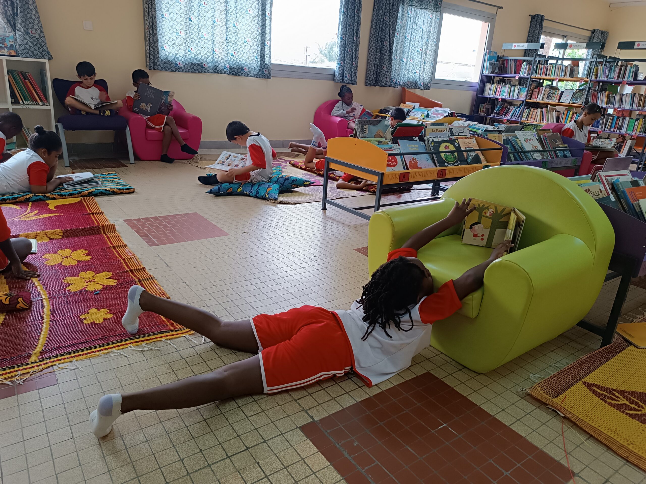Avant les vacances d’Avril, les élèves nous ont rappelé que pour bien lire il faut être à l’aise. Petit échantillon des meilleures positions de lecture à la BCD.