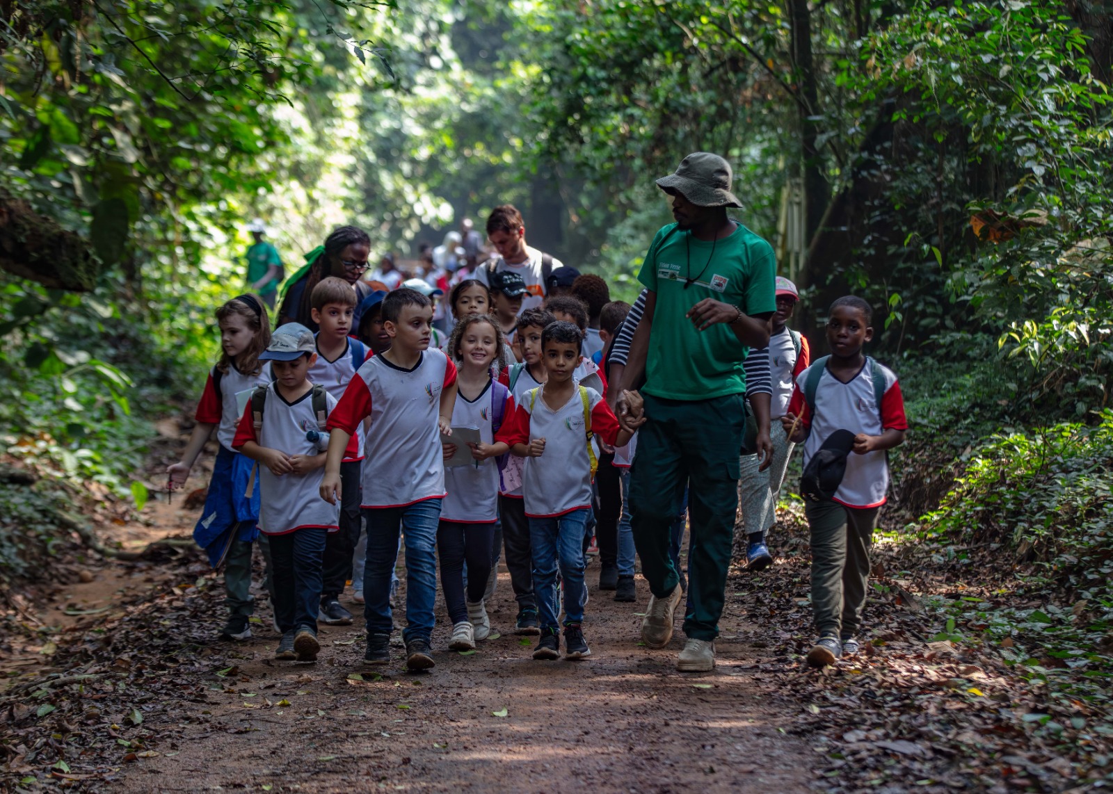 La semaine du 03 au 07 février, cinq classes de CE1 ont plongé au cœur de la majestueuse Forêt du Banco, véritable joyau de verdure au cœur d’Abidjan. Encadrés par leurs enseignants, un guide passionné et des parents, ces jeunes explorateurs ont découvert la richesse d’une forêt primaire, poumon vert de la ville.